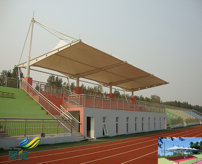 2.膜結(jié)構(gòu)體育看臺(tái)建造施工工期短,膜結(jié)構(gòu)加工制造都是在工廠內(nèi)完成的,縮短了施工時(shí)間,從而也為企業(yè)節(jié)省了施工成本。