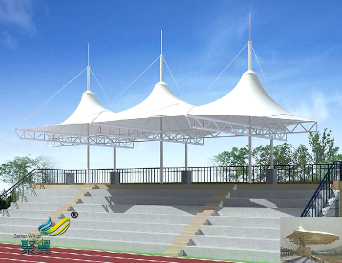 2、膜結(jié)構(gòu)體育看臺具有獨特的光學(xué)性能:白天入射光線成為自然溫射光,防止眩目,無陰影,光線均勻3、膜結(jié)構(gòu)看臺的使用壽命較長:膜結(jié)構(gòu)體育看臺使用溫度范圍廣,能夠在-70℃~230℃的溫度范圍內(nèi)使用。同時膜結(jié)構(gòu)體育看臺采用PTFE膜材料的膜結(jié)構(gòu)建筑具有耐熱性、耐氣候性、耐藥物性、高強(qiáng)度、防火等特性,而且不易老化,經(jīng)過長期使用仍能保持其初建時的強(qiáng)度。所以通常膜結(jié)構(gòu)體育看臺的使用壽命在25年以上。