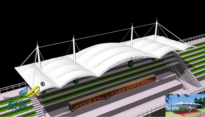 膜結(jié)構(gòu)看臺是膜結(jié)構(gòu)材料近年來應(yīng)用的一個新領(lǐng)域,膜結(jié)構(gòu)建筑能很好的籠罩全部的看臺,膜結(jié)構(gòu)的張拉樣式使得建筑的空間跨度變的更大,同時能縮小建筑的結(jié)構(gòu),建筑的整體重量減輕,這樣施工就會變的簡單安全。這些都是膜結(jié)構(gòu)被廣大用戶選擇的關(guān)鍵因素。膜材的表面都有一種涂層,涂層是為了預(yù)防灰塵雨水的影響,起到保護(hù)膜結(jié)構(gòu)使用年限的作用。