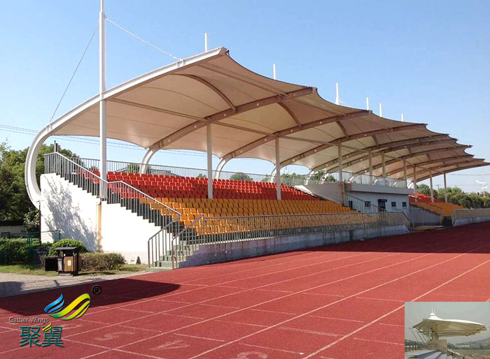膜結(jié)構(gòu)體育看臺輕型結(jié)構(gòu)在自然災(zāi)害等水平荷載作用下能保持很好的穩(wěn)定性。由于輕型結(jié)構(gòu)自重較輕,即使發(fā)生意外坍塌,其危險性也較傳統(tǒng)建筑結(jié)構(gòu)小。