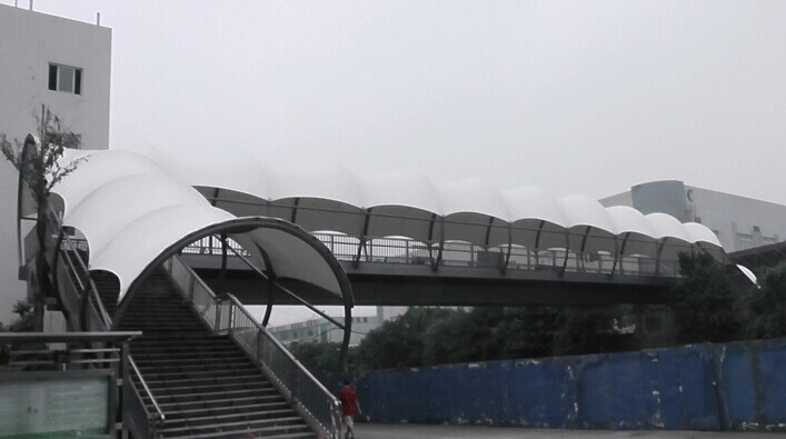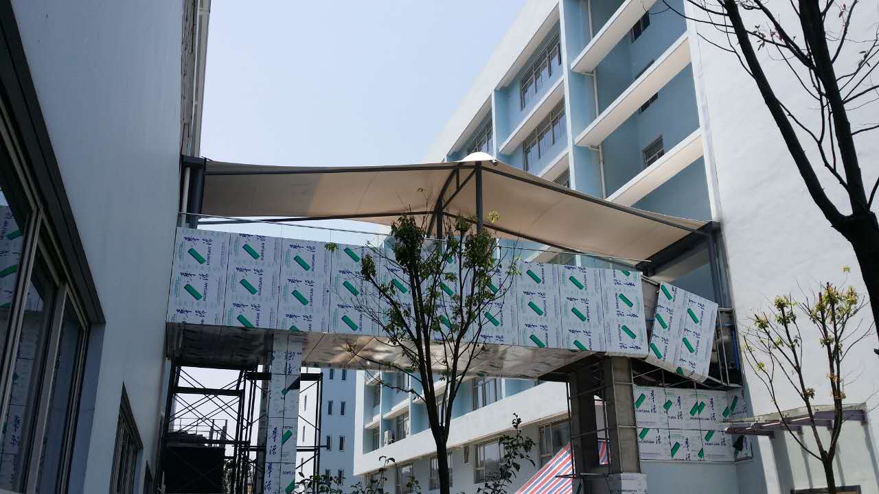 1、藝術、美觀膜結構以造型學、色彩學為依托,可結合自然及民族風情創(chuàng)意出曲線和造型,且造型優(yōu)美、風格各異、飄逸自然,膜結構建筑溶技術、藝術、自然美于一體,每一座膜結構建筑都是一道亮麗的風景線,被譽為21世紀最有代表性與充滿前途的建筑形式。 2、透光、節(jié)能、環(huán)保、抗紫外線:膜材具有優(yōu)良的透光性,透光率為20%-95%,白天可以得到自然的漫射日光,節(jié)約大量照明能源,另外膜材具有反射光熱作用,可以節(jié)省部分作用于空調的能源。 3、耐候性好,使用壽命長: 常用膜材以涂層聚脂織物纖維為主要材料,表面加上100%PVDP、涂層,物理性能可靠穩(wěn)定,確保其使用壽命在20年以上。 4、自重輕、抗震性能佳: 膜材料自重僅為鋼結構1/8,混凝土的1/40,可以建成大跨度的建筑。膜結構的預應力使其建筑膜材尺寸持久穩(wěn)定,能夠抵抗狂風、大雪、地震等。 5、防火、防潮、自潔: 膜材料表面經防護涂層處理后,不吸水、不受潮、抗磨損,防火阻燃,且落在膜材表面的灰塵可以靠雨水的自然沖洗達到自潔效果。