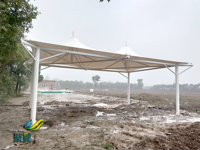 詳細>>金山田園山莊景觀膜結(jié)構(gòu)工程|帽頂棚膜結(jié)構(gòu)