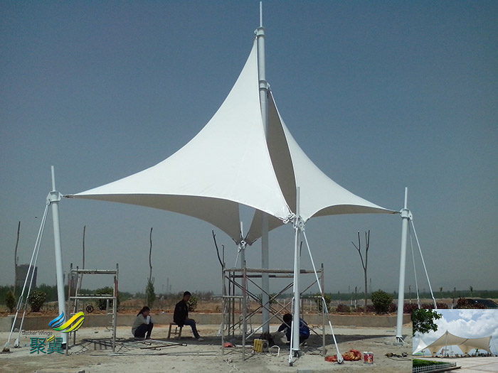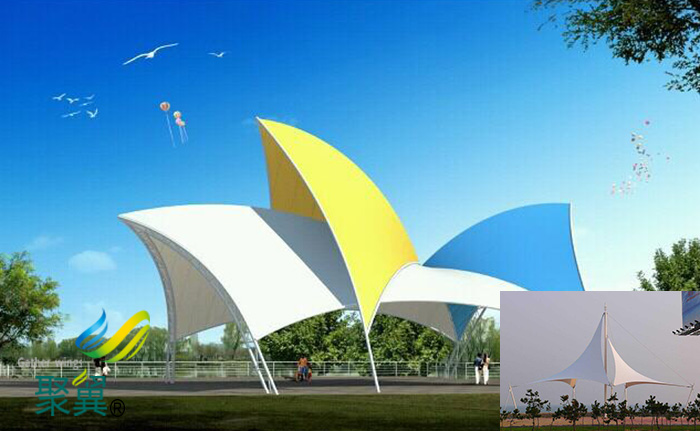 1、因為高強度的膜材出現(xiàn),再加上張拉膜的使用,使景觀張拉膜結構抵擋風雨的才能是通常雨蓬之類不行比較的。
