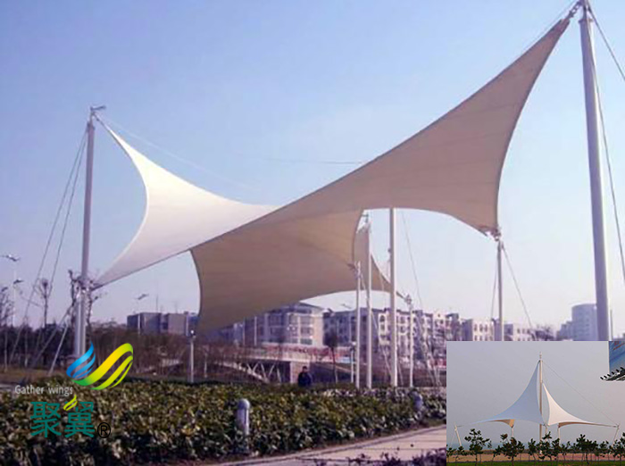 4、景觀膜結(jié)構(gòu)火和抗震性,它能夠很好的滿足防火要求。因為結(jié)構(gòu)重量輕,膜結(jié)構(gòu)的膜材料具有極好的阻燃性和耐高溫,加上柔性結(jié)構(gòu)且有較大變形能力,故抗震性能好。