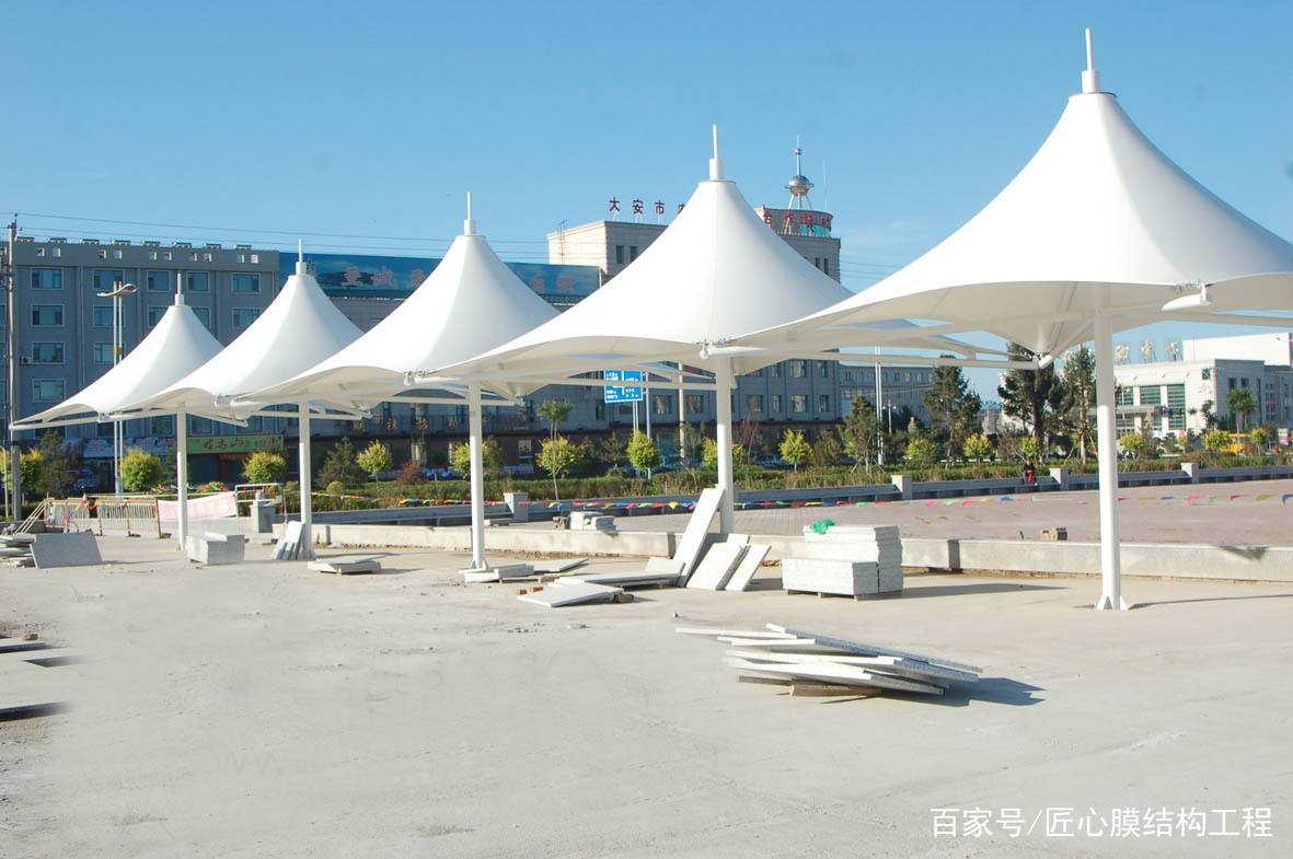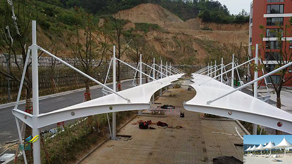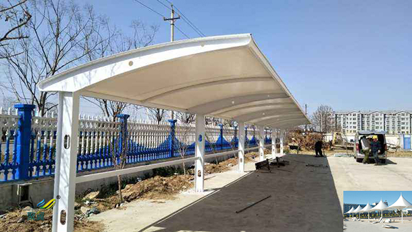 其次,膜結(jié)構(gòu)車棚的好處在于它維護(hù)保養(yǎng)起來(lái)非常的方便和簡(jiǎn)單,也就是說(shuō)它有很好的自潔性,上面落的灰塵,下雨的時(shí)候一沖,自己就干凈了,根本不需要專人經(jīng)常擦洗。這樣可以節(jié)約很大的人力成本。