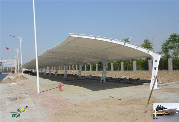停車場的規(guī)劃和建設成為現(xiàn)代城市規(guī)劃的重要組成部分,變的越來越重要。景觀膜結構輕巧、別致的造型在停車場及候車廳的建設中擔當了重要角色。除了滿足防風雨、防日曬等基本功能外,它還有較好的標識招攬效果,展現(xiàn)了人們個性化的一面。