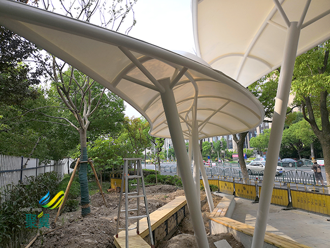 景觀膜結(jié)構(gòu)是一種建筑與結(jié)構(gòu)結(jié)合的結(jié)構(gòu)體系,是采用高強(qiáng)度柔性薄膜材料與輔助結(jié)構(gòu)通過(guò)一定方式使其內(nèi)部產(chǎn)生一定的預(yù)張應(yīng)力,并形成應(yīng)力控制下的某種空間形狀,景觀膜結(jié)構(gòu)作為覆蓋結(jié)構(gòu)或建筑物主體,并具有足夠剛度以抵抗外部荷載作用的一種窄間結(jié)構(gòu)類型。 景觀膜結(jié)構(gòu)結(jié)合整體環(huán)境,建造出標(biāo)志性的形象工程,并且實(shí)用性強(qiáng)、應(yīng)用領(lǐng)域廣泛。既可應(yīng)用了大型公共設(shè)施,如體育場(chǎng)館的屋頂系統(tǒng)、機(jī)場(chǎng)大廳、展覽中心、購(gòu)物中心、停車場(chǎng)、站臺(tái)設(shè)施等。景觀膜結(jié)構(gòu)又可應(yīng)用于休閑設(shè)施、工業(yè)設(shè)施、入口廊道以及標(biāo)志性或景觀性的建筑、小品等。