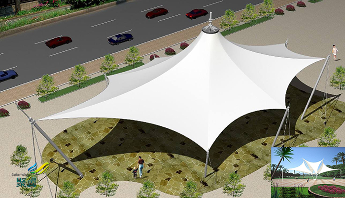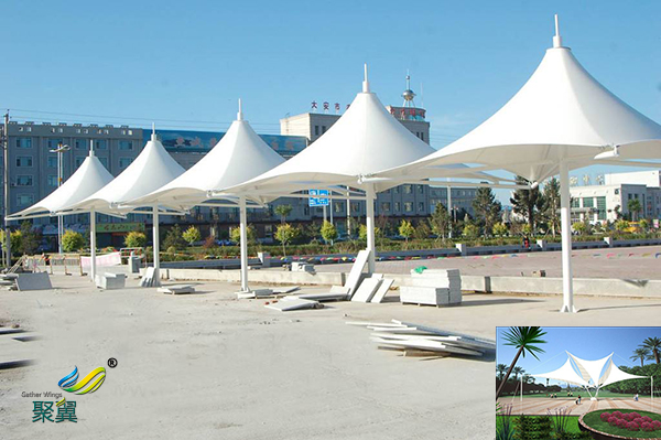 膜結(jié)構(gòu)已經(jīng)在各種公共場(chǎng)所廣泛使用。在商場(chǎng)、運(yùn)動(dòng)場(chǎng)、音樂廳等都可見到采用膜結(jié)構(gòu)技術(shù)各種造型的屋頂。