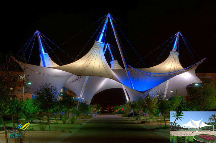 • 屋頂舞臺燈光膜結(jié)構(gòu)高面端翻布篷定制