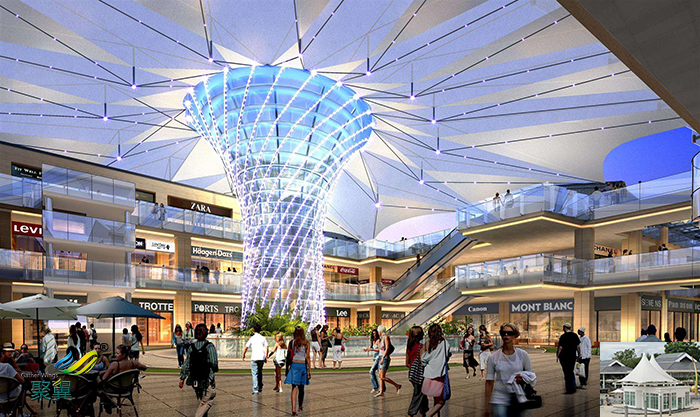 膜結(jié)構(gòu)形狀變幻多端,由于其本身的特性(材質(zhì)自重輕,支撐方式靈活)使得設(shè)計(jì)師可以在設(shè)計(jì)上充分發(fā)揮天馬行空的想象力,大家如果留意的話就可以看到大部分膜結(jié)構(gòu)建筑造型非?;顫妰?yōu)美打破了傳統(tǒng)建筑形式的那種沉悶,非常具有張力及雕塑感,勢(shì)能能展現(xiàn)現(xiàn)代氣息的建筑形式之一。通過膜材和透光保溫材料的適當(dāng)組合,可以使含保溫層的多層膜具有透光性。即使光譜透射只有幾個(gè)百分點(diǎn),膜屋面對(duì)于人眼來說依然是發(fā)亮和透光的,具有輕型屋面的觀感。
