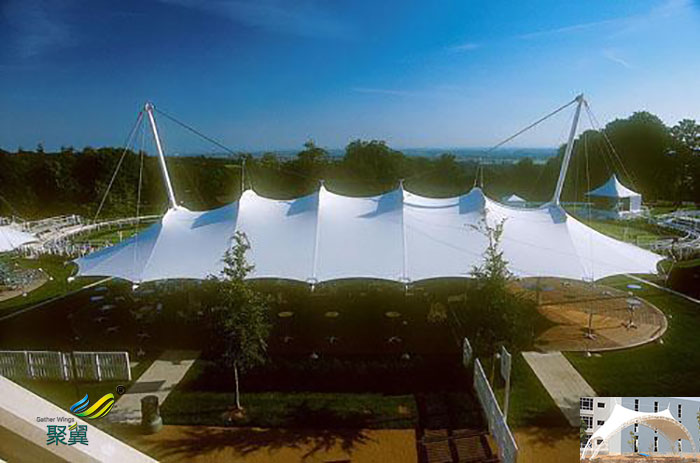 舞臺建筑膜結構被人們廣泛應用于各類新型建筑。那么,膜結構常用的材質(zhì)有哪些?玻纖PVC:為提高PVC本身的耐老化性能,涂層加入一些光、熱穩(wěn)定劑,淺色透明產(chǎn)品加一定量的紫外吸收劑,深色產(chǎn)品加炭黑做穩(wěn)定劑,也可以在PVC上層壓一層極薄的金屬薄膜或噴射鋁霧,用云母或石英來防止表面發(fā)粘和沾污。玻纖有機硅樹脂:具有非常好的耐高低溫、拒水、抗氧化等特點,舞臺建筑膜結構有較高的抗拉強度和彈性模量,有良好的透光性。這種膜材應用的不多,生產(chǎn)廠家也較少。PTFE:PTFE膜材無疑是的,以超細玻璃纖維織物為基材涂以聚四氟乙烯樹脂(PTEF)而成。優(yōu)點:阻燃、抗老化、抗紫外線、防污自潔性能好、較好的焊接性能;ETFE。由ETFE(乙烯-四氟乙烯共聚物)生料直接制成。優(yōu)點:抗沖擊性、抗電、熱穩(wěn)定、耐化學腐蝕、機械強度高、加工性能好、應用范圍廣、透光性能好、質(zhì)量輕、延展性高等特點。