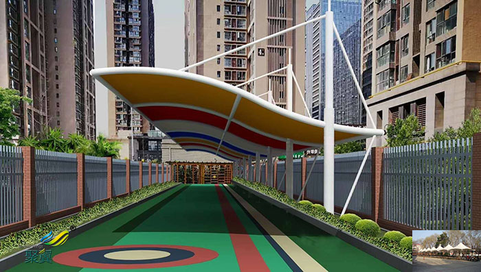 膜結構停車棚,自重輕,具有良好的受力特點—成為大跨度空間結構的主要形式之一。停車場的規(guī)劃和建設成為現(xiàn)代城市規(guī)劃的重要組成部分,變的越來越重要。膜結構輕巧、別致的造型在停車場及候車廳的建設中擔當了重要角色,除了滿足防風雨、防日曬等基本功能外,并有較好的標識招攬效果,展現(xiàn)了人們個性化的一面。