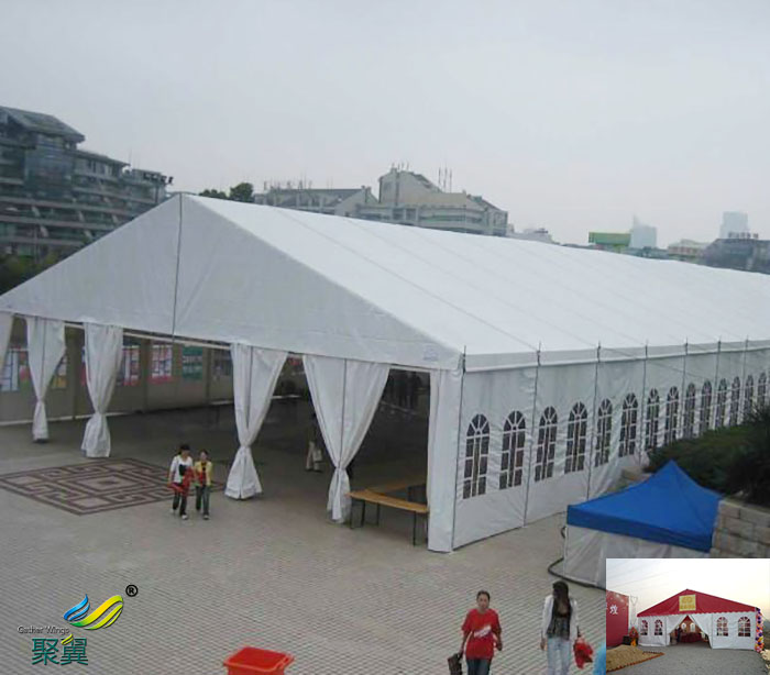篷房的主體規(guī)劃選用高強度鋁合金型材,建筑原理為鋁材匣形梁規(guī)劃,柱間支撐聯(lián)接選用鋼部件,屋面選用鋼纜斜拉條加固,屋面及墻面均有基布圍護。材料選用鋁合金型材GB/T-6063標準,經國家有色金屬質量監(jiān)督查驗中心查驗,材料合格。篷房工程基礎穩(wěn)固,所用材料及規(guī)劃具有很高的完整性與安全性。建筑規(guī)劃達到了嚴峻的歐洲標準。整體規(guī)劃經過了專業(yè)組織的風力檢驗和損壞檢驗。