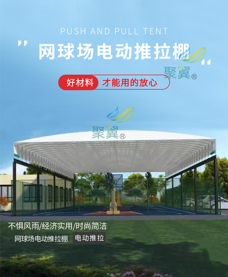 • 網(wǎng)球場(chǎng)籃球場(chǎng)電動(dòng)伸縮推拉棚