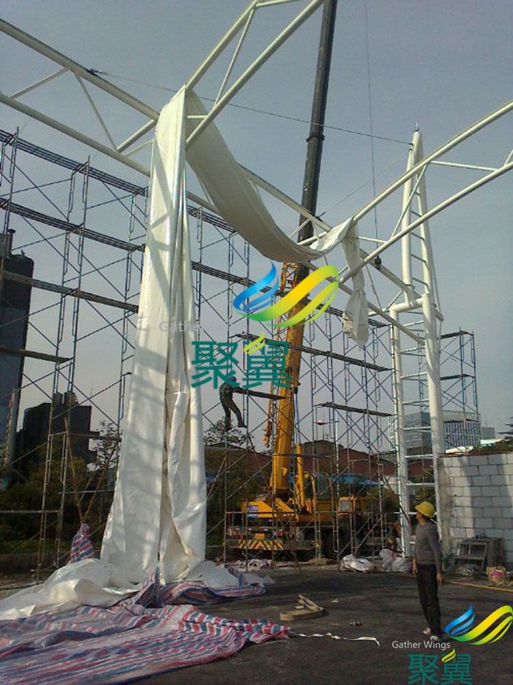 2)膜布安裝施工時應注意天氣預報,保證在整個安裝過程中無四級以上大風和大雨。