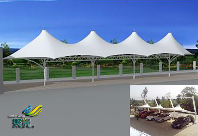 膜結(jié)構(gòu)車棚的優(yōu)點(diǎn)是強(qiáng)度高、耐用、防火難燃、高自潔性、不受紫外線影響,使用壽命長,透光性好、熱量吸收少等特點(diǎn),正是因?yàn)槟そY(jié)構(gòu)車棚膜材料這一發(fā)明具有這么多的特點(diǎn),因而膜結(jié)構(gòu)車棚這一建筑成為了我們身邊越來越不可或缺的建筑。