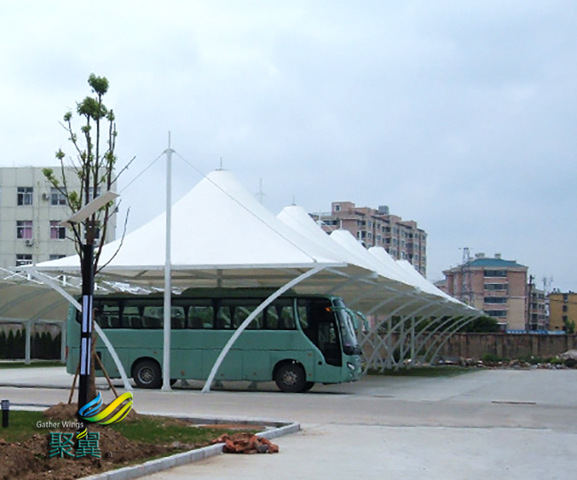 膜結(jié)構(gòu)車棚具有藝術(shù)性,除了一般的雨篷具有不可比擬的使用價值,且比較耐用,具有遮風(fēng)擋雨的效果,不僅如此,還具有給人美觀的享受。膜結(jié)構(gòu)車棚本身柔美曲線的效果,且可以剛?cè)岵?jì),造型豐富,使用的時候十分便利。膜結(jié)構(gòu)車棚的防雨能力更強(qiáng),目前很多車棚使用了永久模式的膜材,使用了三四十年都沒有問題,尤其是遇到了劇烈的暴風(fēng)雨氣候,也不會損壞。