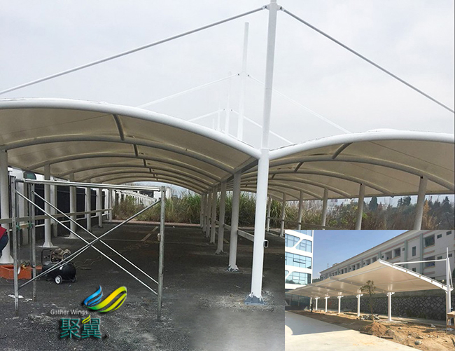 膜結(jié)構(gòu)車棚這樣的膜結(jié)構(gòu)建筑一般采用鋼結(jié)構(gòu)支撐。阻燃涂料是我國鋼結(jié)構(gòu)常用的防護(hù)涂料。目前大多數(shù)類似的建筑都沒有涂防火涂料。還有一種穩(wěn)定性較好的方法:膜結(jié)構(gòu)車棚結(jié)構(gòu)處理,使膜表面靠近電纜下方,火災(zāi)煙霧先面向膜表面,使電纜下方有額外的保護(hù)層,使鋼框架不受高溫的影響。