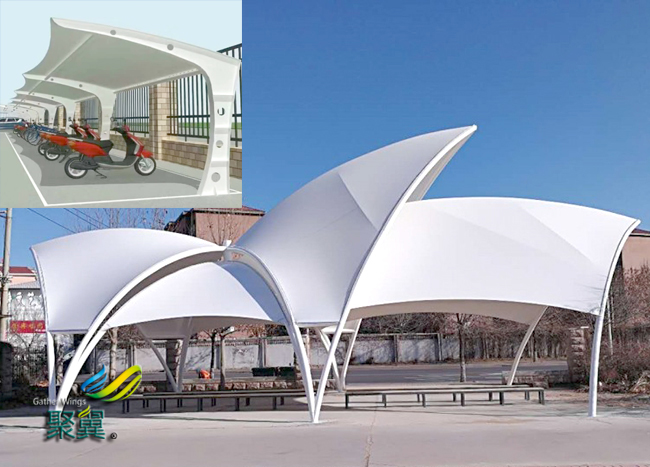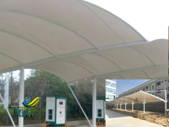 膜結(jié)構(gòu)車(chē)棚是一座雕塑,一件藝術(shù)品,給人美的視覺(jué)享受。其柔美,膜結(jié)構(gòu)車(chē)棚曲線(xiàn),其剛?cè)岵?jì),其豐富造型,其潔白無(wú)瑕,讓人眼前一亮,回味悠長(zhǎng)。膜結(jié)構(gòu)車(chē)棚輕便性:重量輕,絕對(duì)保證棚下人和物的安全。但由于荷載作用下膜結(jié)構(gòu)車(chē)棚材料會(huì)產(chǎn)生變形,膜面坡度較小處可能會(huì)有積水。