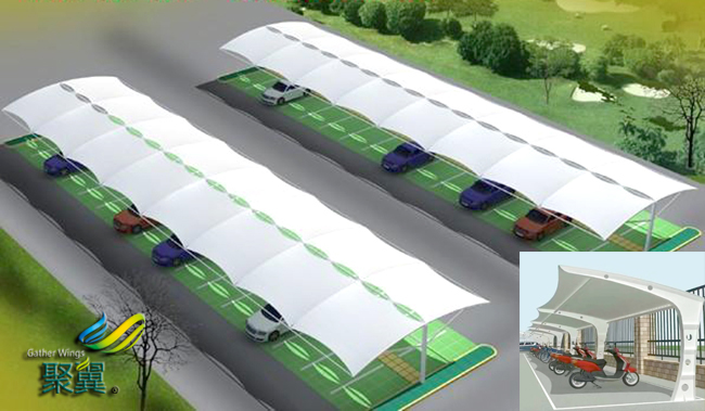 廠區(qū)膜結(jié)構(gòu)車棚的工程,先期進(jìn)行測量和規(guī)劃,然后根據(jù)損耗是使用量進(jìn)行膜材料的生產(chǎn)。