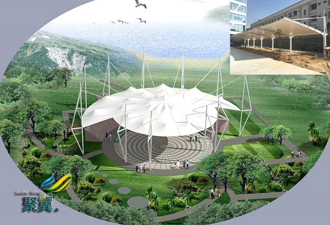 膜結(jié)構(gòu)車(chē)棚創(chuàng)造新的、前所未有的建筑空間的無(wú)限可能的性。比如是以下的空間:可能的是不需要整體的環(huán)境控制的空間,或是可創(chuàng)造的并是促進(jìn)社會(huì)的交流互動(dòng)的空間(甚至是連客戶(hù)的設(shè)計(jì)的任務(wù)書(shū)也是并未提出過(guò)類(lèi)似方面的要求)