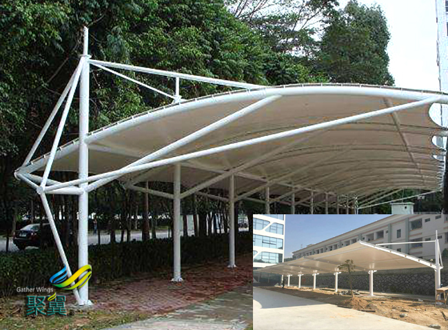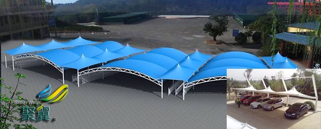 膜結(jié)構(gòu)車棚是一種新型的材料,具有藝術(shù)性、經(jīng)濟(jì)性、保溫性、自潔性、阻燃性、吸聲性和透光性。
