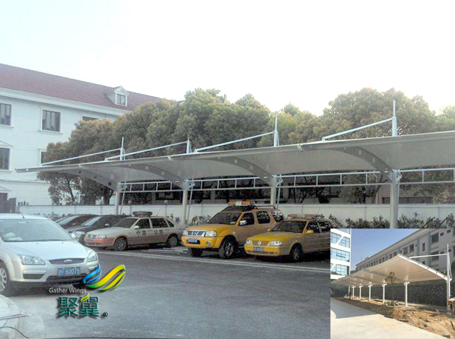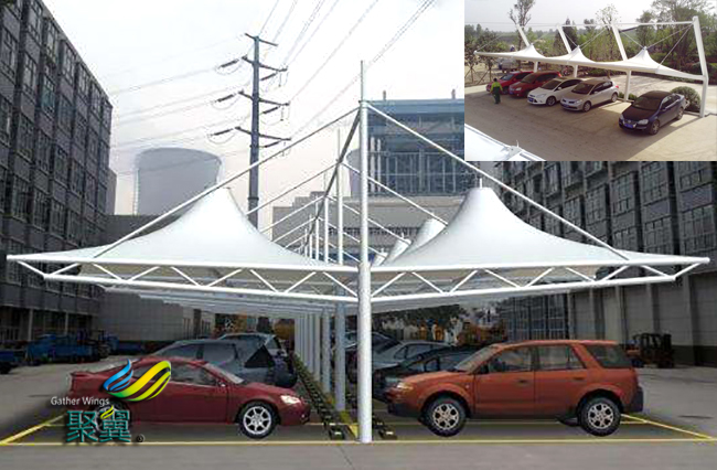 膜結(jié)構(gòu)車棚一種作為屏障,用來(lái)保護(hù)車輛不受損傷的一種建筑,主要起到擋風(fēng)遮雨的功能,還有膜結(jié)構(gòu)車棚也是一件難得藝術(shù)品。