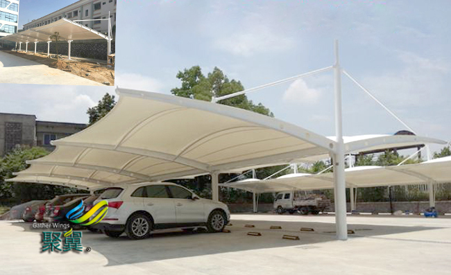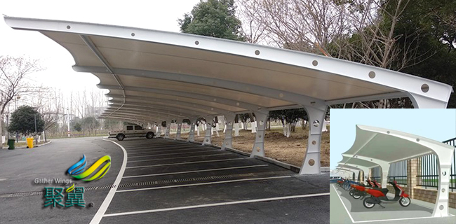 膜結(jié)構(gòu)車棚建筑作為新材料、新建筑已被推廣應(yīng)用,基于膜結(jié)構(gòu)車棚表面經(jīng)過特殊處理的膜材具有壽命長(zhǎng)及自潔性好等特點(diǎn),使得本產(chǎn)品有別于常見的普通建筑。