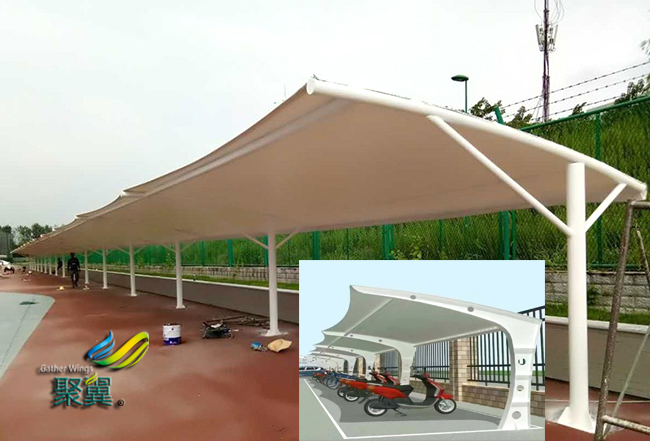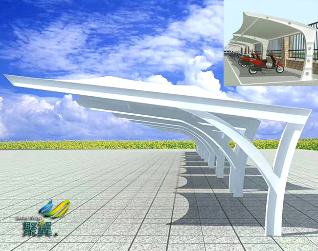膜結(jié)構(gòu)車棚是一座雕塑,一件藝術(shù)品,給人美的視覺享受。其柔美,其曲線,膜結(jié)構(gòu)車棚剛?cè)岵?,其豐富造型,其潔白無瑕,讓人眼前一亮,回味悠長。輕便性:重量輕,絕對保證棚下人和物的安全。但由于荷載作用下膜結(jié)構(gòu)材料會產(chǎn)生變形,膜結(jié)構(gòu)車棚膜面坡度較小處可能會有積水。