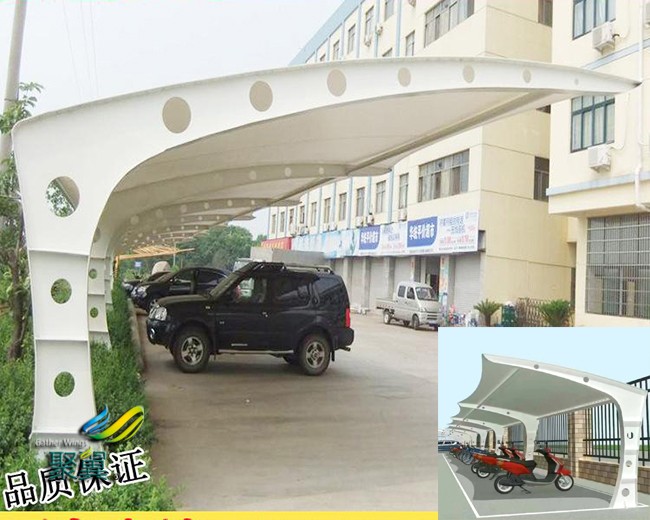 膜結(jié)構(gòu)停車棚大跨度、腐蝕,壽命,耐久度,等等,這種新結(jié)構(gòu)據(jù)說是從國外引進(jìn)的,有相關(guān)市政設(shè)計(jì)院推薦該創(chuàng)新結(jié)構(gòu)在江浙滬一帶已經(jīng)應(yīng)用于不少的工程!此種工程名為膜結(jié)構(gòu)工程,利用鋼結(jié)構(gòu)及氟碳纖膜材料經(jīng)過加工處理拉伸成型的一種新型結(jié)構(gòu)。