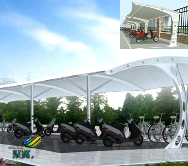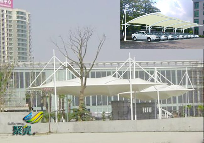 膜結(jié)構(gòu)車棚的材料區(qū)分,膜結(jié)構(gòu)材料是由基布和涂層兩部分組成.基布主要采用聚酯纖維和玻璃纖維材料;膜結(jié)構(gòu)車棚涂層材料主要聚氯乙烯和聚四氟乙烯.常用膜材為聚酯纖維覆聚氯乙烯 膜結(jié)構(gòu)車棚(PVC)和玻璃纖維覆聚聚四氟乙烯(Teflon).