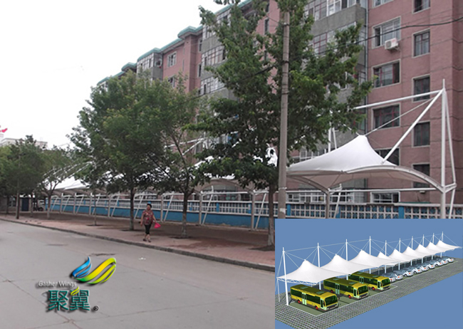 您當(dāng)前的位置:首頁(yè) >> 新聞資訊 > 行業(yè)資訊 > >> 正文 馬路邊現(xiàn)代感十足的膜結(jié)構(gòu)車棚雨棚