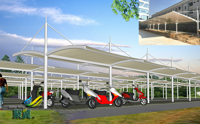 如今隨著人們的生活條件越來越好,購買小車的人也越來越多,然而汽車的膜結(jié)構(gòu)車棚卻是個比較困擾的難題。一些小區(qū)的地下停車車位不夠,而小區(qū)業(yè)主的汽車又比較多。因而只好停在路邊或者是小區(qū)內(nèi),都是露天存放的形式,汽車容易受到風(fēng)雨的侵蝕,這就需要一個膜結(jié)構(gòu)車棚為汽車遮風(fēng)擋雨了。