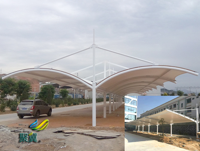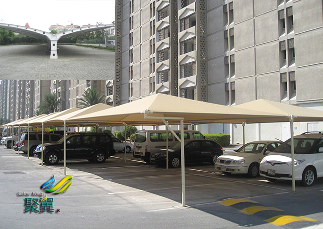膜結(jié)構(gòu)車棚采光好;照射到膜結(jié)構(gòu)車棚建筑屋面的陽光會以漫射光的方式透射到建筑內(nèi)。建筑內(nèi)來看,棚內(nèi)的采光強(qiáng)度因陽光照射的強(qiáng)度而改變。
