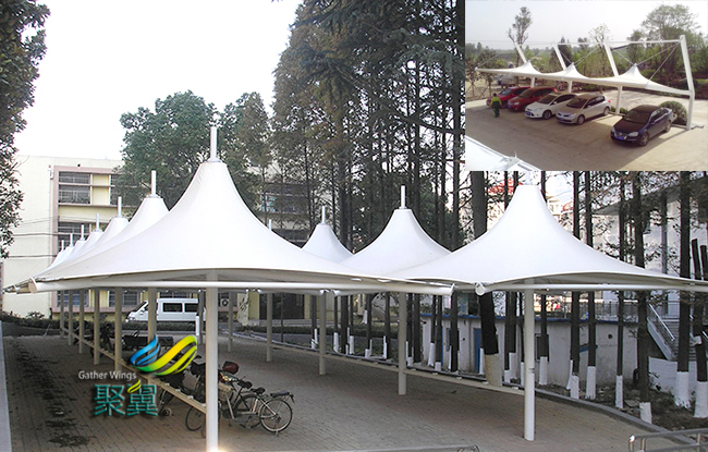 膜結構車棚不僅僅為廣大的居民出行帶來了方便,還可以對周圍的環(huán)境起到美觀的作用。而且越來越多的自行車騎行愛好者也能看出我們的環(huán)保意識在不斷的增強,在膜結構車棚的保護作用下也使自行車,電動車的壽命大大的增強,所以可以鼓勵更多人加入環(huán)保的行列。