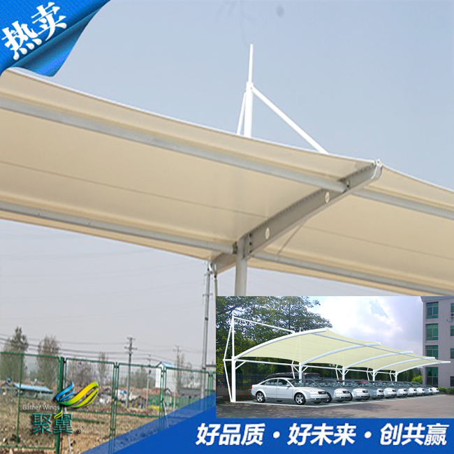 膜結(jié)構(gòu)車棚膜面的尺寸,膜面尺寸的測量并不是在現(xiàn)場進行,而是在拼接廠完成的。因為要保證它的整潔性與精確性,所以必須先在車間內(nèi)對其測量,在這之后再進行折疊與裝運。在施工的時候只需要直接將膜結(jié)構(gòu)車棚展開就可以了。所以如果尺寸確定不到位的話,就會浪費很多的時間,同時也會影響建筑的質(zhì)量。  膜結(jié)構(gòu)車棚膜面的質(zhì)量。施工的時候都需要對膜面進行嚴格的保護,比如嚴禁其與地面接觸,不能隨意踩在上面。如果不注意的話,膜結(jié)構(gòu)車棚膜面就會被刮壞或是弄臟,這樣就影響了它的美觀。