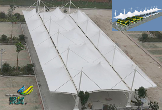 膜結構車棚是一種公用建筑物,是由建設單位出資進行修建,所以這種產(chǎn)品的首要要求就是耐用穩(wěn)固,金屬膜結構車棚都是金屬支撐柱,然后其上進行焊接等工藝加裝頂棚。