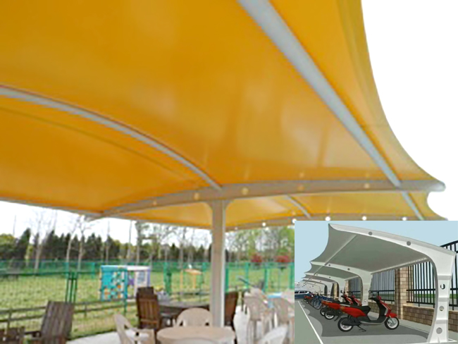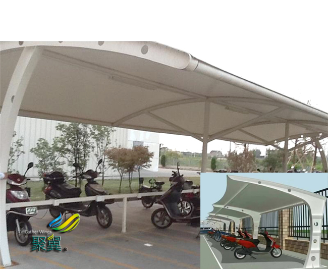 膜結(jié)構(gòu)停車棚的規(guī)劃和建設(shè)成為現(xiàn)代城市規(guī)劃的重要組成部分,變的越來(lái)越重要。膜結(jié)構(gòu)停車棚輕巧、別致的造型在停車場(chǎng)及候車廳的建設(shè)中擔(dān)當(dāng)了重要角色,除了滿足防風(fēng)雨、防日曬等基本功能外,膜結(jié)構(gòu)停車棚并有較好的標(biāo)識(shí)招攬效果,展現(xiàn)了人們個(gè)性化的一面。