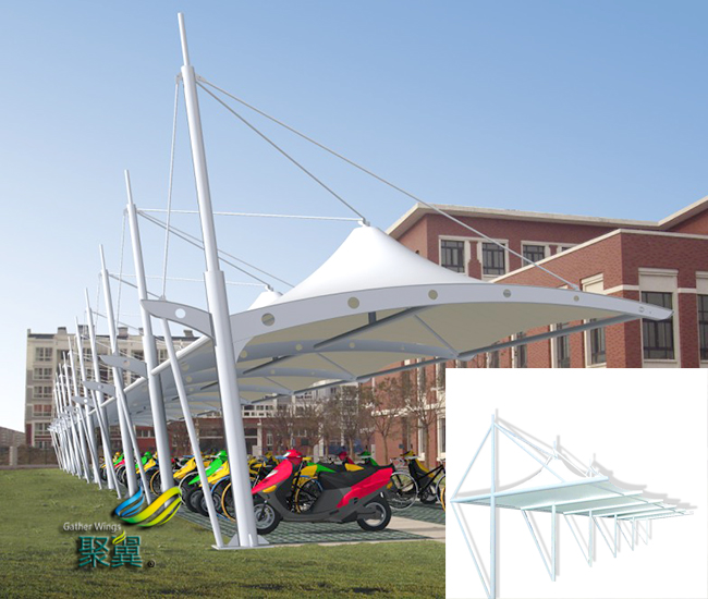 不同膜結(jié)構(gòu)車棚膜材柔性程度也同|雕塑感