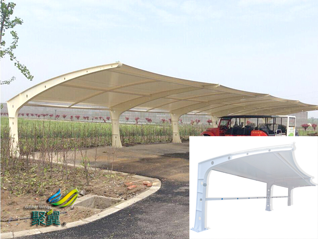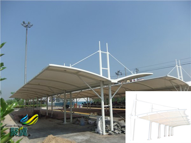 膜結(jié)構(gòu)車棚棚在*初是作為一種能提供給車輛停泊的地方,使車輛避免了直接面對(duì)風(fēng)吹雨打。用來(lái)保證自行車,汽車等在膜結(jié)構(gòu)車棚下不受損傷。在膜結(jié)構(gòu)車棚未出現(xiàn)之前,市場(chǎng)主要的是鐵制車棚,鋁合金車棚,彩鋼車棚等。這些車棚都是采用金屬構(gòu)件來(lái)制作,因此具有笨重,形式單調(diào)的缺點(diǎn)。
