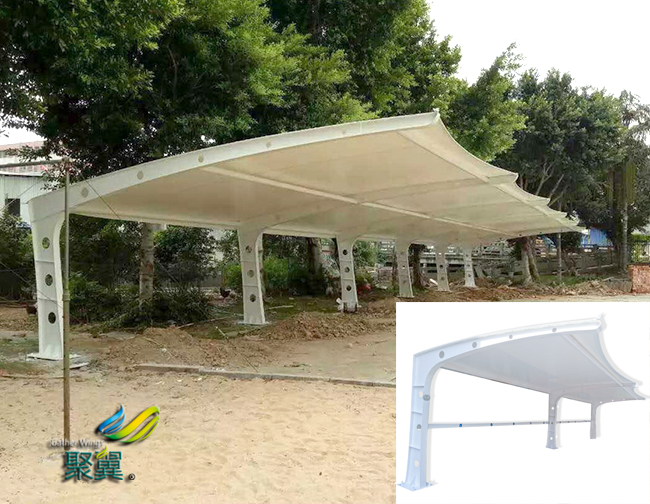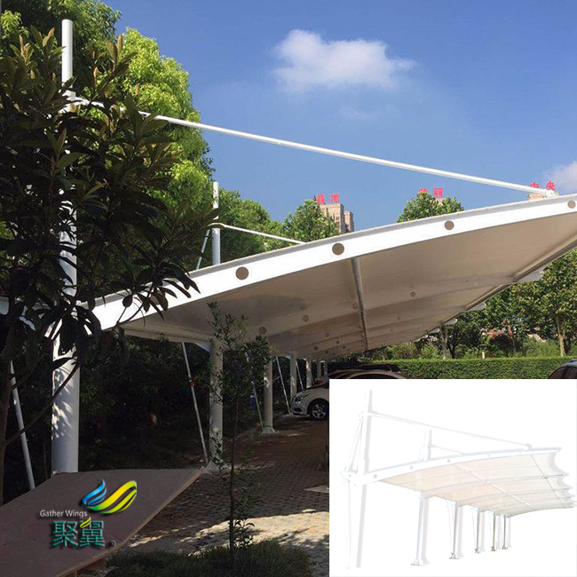 膜結(jié)構(gòu)車(chē)棚外形可豐富多樣,而且比較美觀可以成為一個(gè)城市的景觀,膜結(jié)構(gòu)車(chē)棚使用比較廣泛。而對(duì)膜結(jié)構(gòu)車(chē)棚,剛接觸這個(gè)詞時(shí),以為主要是給自行車(chē)搭建的車(chē)棚,而后發(fā)現(xiàn)主要是給汽車(chē)搭建的膜結(jié)構(gòu)車(chē)棚。其實(shí)膜結(jié)構(gòu)車(chē)棚主要是規(guī)劃和建設(shè)現(xiàn)代化社會(huì),從而使城市更加美觀和富有創(chuàng)意,目前來(lái)說(shuō)膜結(jié)構(gòu)車(chē)棚主要普遍用在社區(qū)、學(xué)校、商業(yè)、體育館、工廠等等。