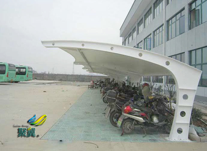 膜結(jié)構(gòu)車棚所運(yùn)用的資料是由高強(qiáng)度的織物基材和聚合物涂層構(gòu)成的復(fù)合資料。膜結(jié)構(gòu)車棚造型美麗,有杰出的視覺作用。這一點(diǎn)是無可厚非的,我們?cè)谌粘5娜兆又卸寄軌蚩吹侥切┰煨酮?dú)具構(gòu)思的  膜結(jié)構(gòu)車棚。膜結(jié)構(gòu)車棚膜材能夠讓設(shè)計(jì)師充分發(fā)揮幻想,隨意刻畫造型。