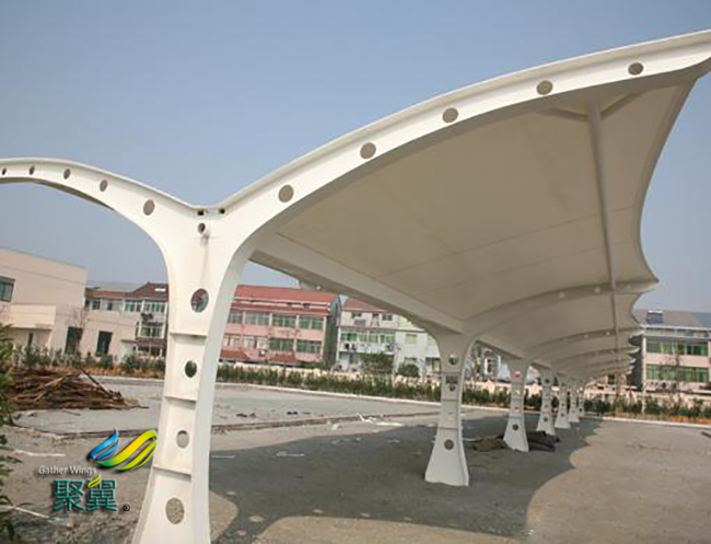 膜結(jié)構(gòu)車棚材料的選擇很大程度取決于膜結(jié)構(gòu)建筑物的功能、防火要求、壽命、設(shè)計和投資金額。