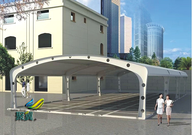 膜結(jié)構(gòu)車棚適用高強(qiáng)度柔性薄膜材料經(jīng)受其它材料的拉壓作用而形成的穩(wěn)定曲面,能承受一定外荷載的空間結(jié)構(gòu)形式。膜結(jié)構(gòu)車棚造型自由、輕巧、柔美,充滿力量感,阻燃、制作簡(jiǎn)易、安裝快捷、膜結(jié)構(gòu)車棚節(jié)能、易于、使用安全等優(yōu)點(diǎn),因而使膜結(jié)構(gòu)車棚在世界各地受到廣泛應(yīng)用。