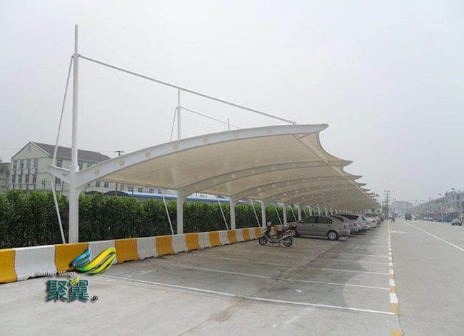 膜結(jié)構(gòu)車(chē)棚表面共擠層具有化學(xué)吸收紫外線(xiàn)并轉(zhuǎn)化為可見(jiàn)光。對(duì)植物光合作用有良好的穩(wěn)定效果(極適合保護(hù)各類(lèi)車(chē)、貴重藝術(shù)品及展品,使膜結(jié)構(gòu)車(chē)棚不受紫外線(xiàn)破壞)。
