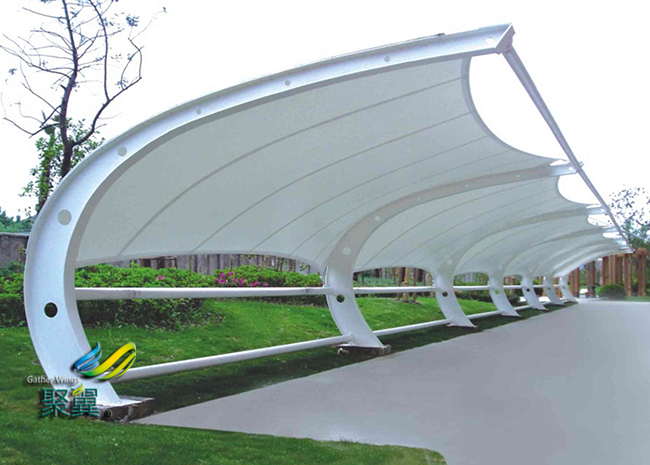 景觀膜結(jié)構車棚工程能提供豐富多彩的用途,并與園林景觀融為一體。創(chuàng)造出讓人們盡情享受的快樂空間。充分展示了膜結(jié)構車棚清晰受力的藝術之美,膜結(jié)構車棚巧妙的整合周圍的環(huán)境,給人們一種高貴典雅、浪漫溫馨之感。