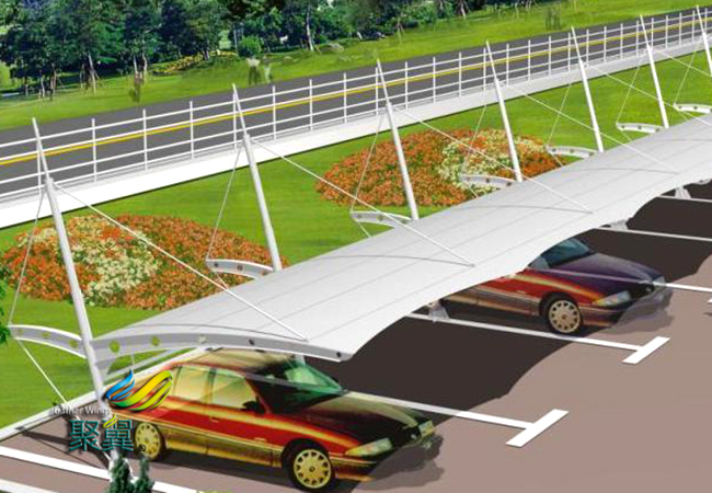 膜結(jié)構(gòu)車棚柔美,其曲線,其剛?cè)岵?jì),其豐厚造型,膜結(jié)構(gòu)車棚潔白無瑕,讓人眼前一亮,回味悠長。 膜結(jié)構(gòu)車棚膜構(gòu)造中所使用的膜資料每平方壹公斤左右,因?yàn)樽灾剌p,加上鋼索、鋼構(gòu)造高強(qiáng)度資料的選用,與受力系統(tǒng)簡練合理——力大部分以軸力傳遞,故使膜結(jié)構(gòu)車棚膜構(gòu)造合適跨越大空間而構(gòu)成開闊的無柱大跨度構(gòu)造系統(tǒng)。