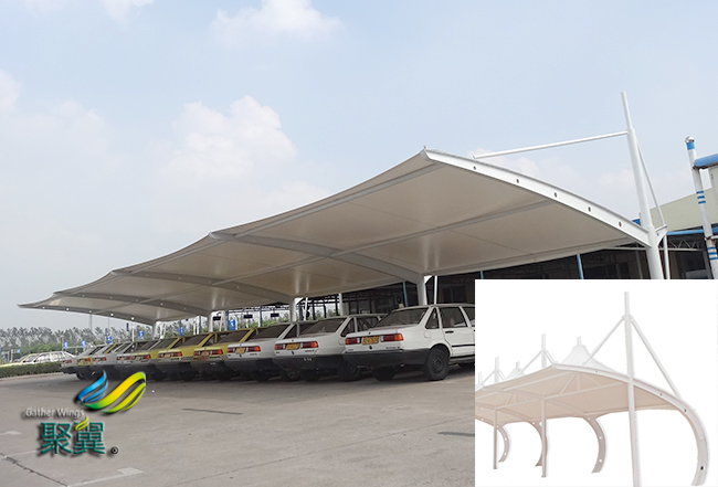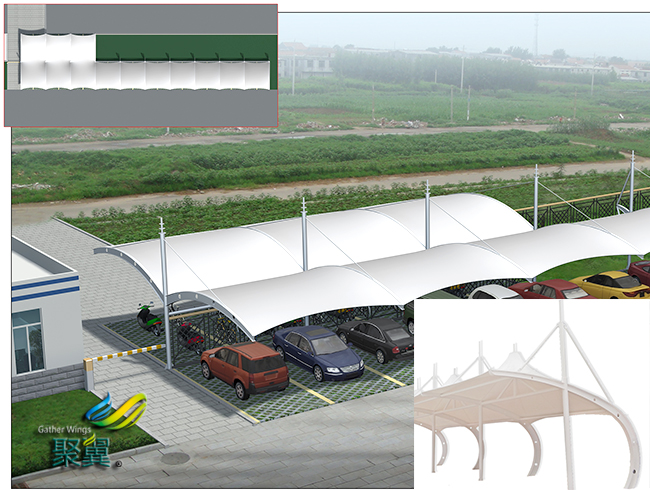 膜結(jié)構(gòu)車棚必選。這是一個會接收大量外來人員的地方,外來人員的數(shù)是增加,車輛又是現(xiàn)在主要的交通工具,也都得驅(qū)車前來,所以也必須要有自己的這類基礎(chǔ)設(shè)施。
