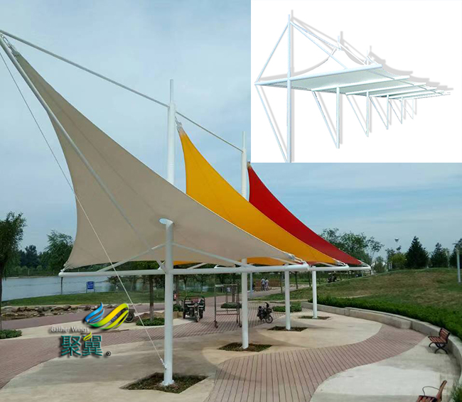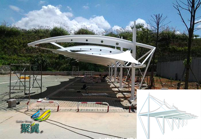 膜結(jié)構(gòu)車棚一種作為屏障,用來保護(hù)車輛不受損傷的一種建筑,主要起到擋風(fēng)遮雨的功能,還有膜結(jié)構(gòu)車棚也是一件難得藝術(shù)品。