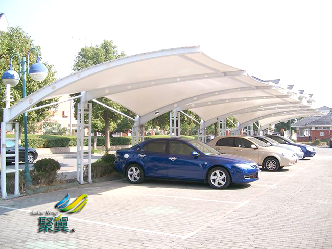 膜結(jié)構(gòu)車棚的重量輕,膜結(jié)構(gòu)車棚布是一種建筑織物,能承受高強度的沖擊和拉伸,而且可以任意變形。因此膜結(jié)構(gòu)車棚在行業(yè)內(nèi)有“不破玻璃”的稱號。同時成本只有其它結(jié)構(gòu)車棚的一半或者更少。